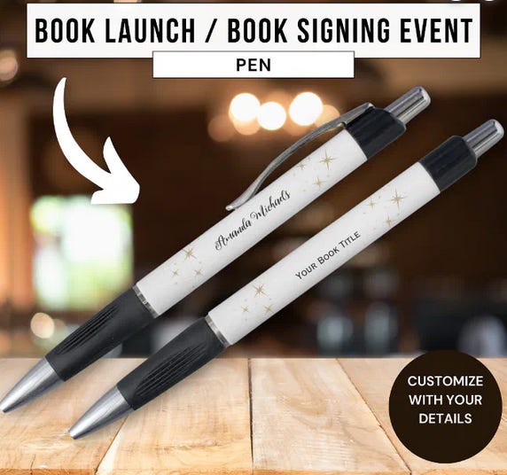 Promotional pens are another item I’ve seen authors hand out: