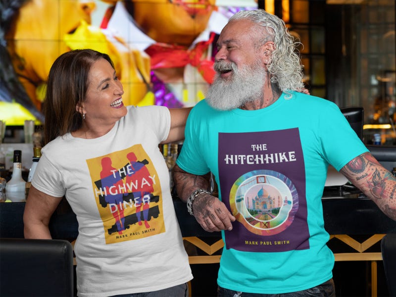 Now, to be clear, the image up-top is a mock-creation. I made it only for the purpose of today’s newsletter. Those t-shirts, which promote the work of author Mark Paul Smith (who’s a great guy and acquaintance) are not real.